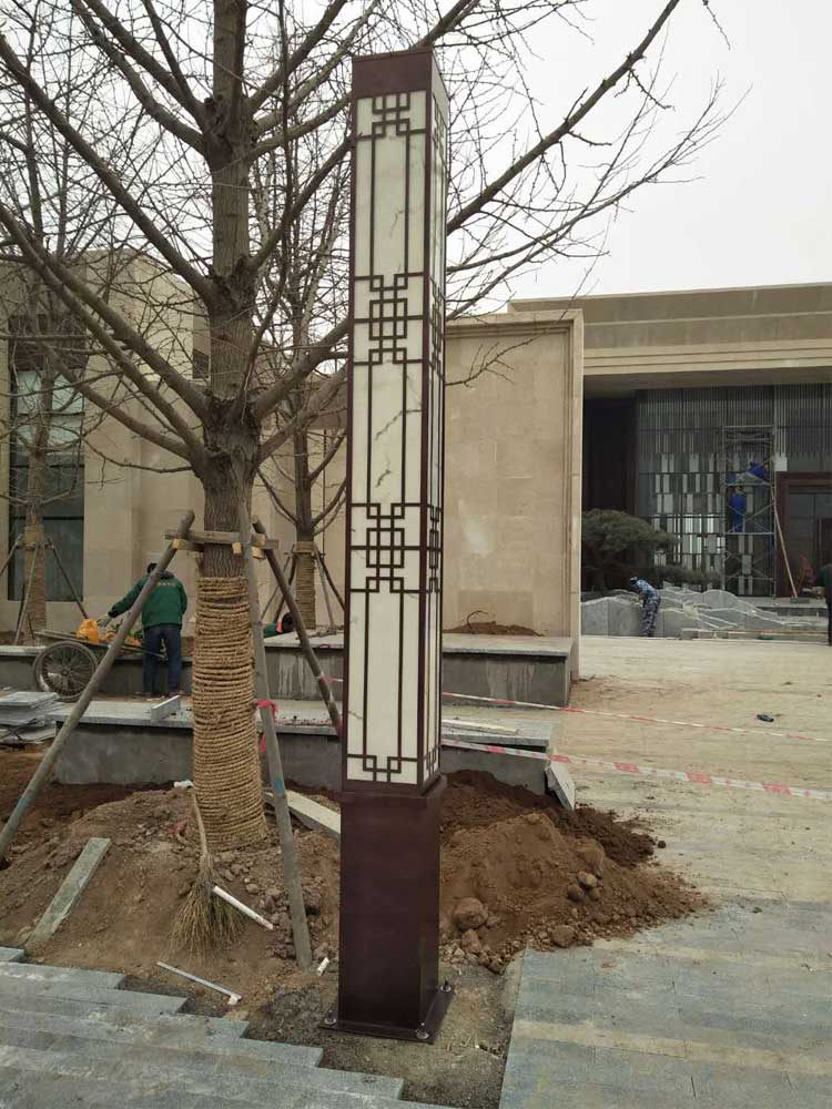 寶雞花旗集團庭院方燈,該項目主要采用的是我公司自己設(shè)計生產(chǎn)的庭院燈、草坪燈。顏色外觀采用激光切割板材與亞克力板組成,造型簡單大方,顏色深淺搭配柔和,夜間亮燈,散發(fā)出暖色燈光。