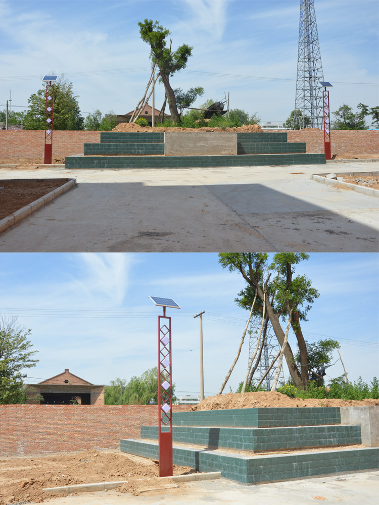 簡介—— 陜西省渭南市澄城秦漢宮移民小區(qū)太陽能路燈工程,移民區(qū)的項目是國家為了集中改善農(nóng)村居民的居住和生活環(huán)境,將零散的農(nóng)村居民集中在一起進行安置的好項目,我們蘭光照為移民工程提供了實用性比較強的3.5米單板單頭節(jié)能太陽能庭院燈,造型簡單,光源亮度好,非常經(jīng)濟實惠,實用高效。