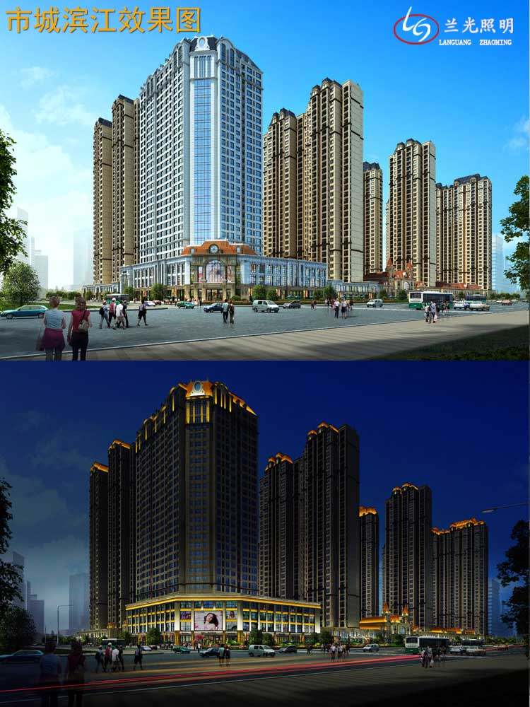 市城濱江樓體亮化設(shè)計,改建筑采用的是建筑輪廓照明和局部重點照明,進行建筑環(huán)境景觀的在塑造,設(shè)計中舍棄景觀中繁瑣細節(jié)的表現(xiàn),將較直觀的景觀以大氣的燈光氛圍,以節(jié)能而質(zhì)樸的燈光為市民營造一個優(yōu)美高雅的夜間環(huán)境。