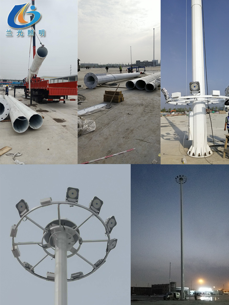 3.高桿燈頂部配設(shè)避雷針,所有連接部件為不銹鋼螺栓負(fù)載能力1000公斤。